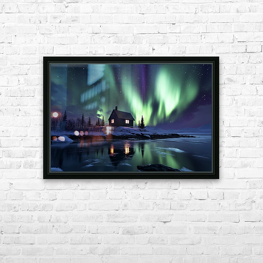 Northern Lights Alaska House Picture Frame Printing
