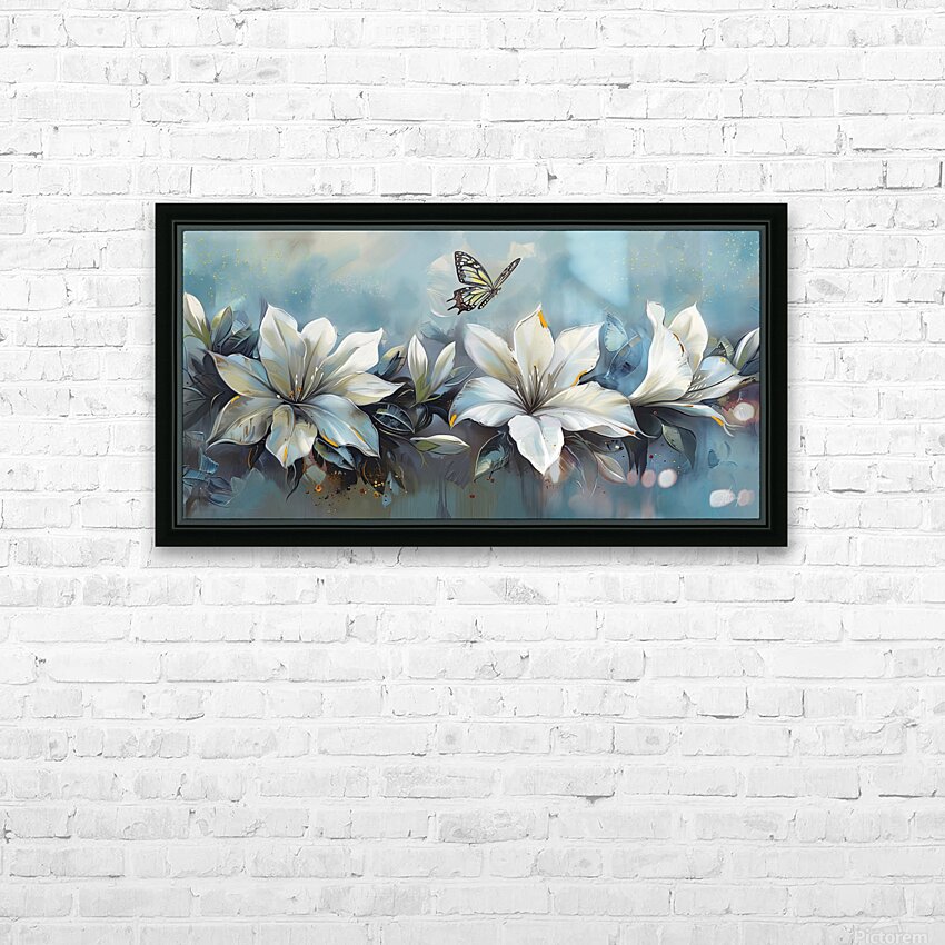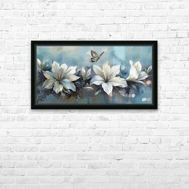 WHITE FLOWERS BUTTERFLY Picture Frame Printing