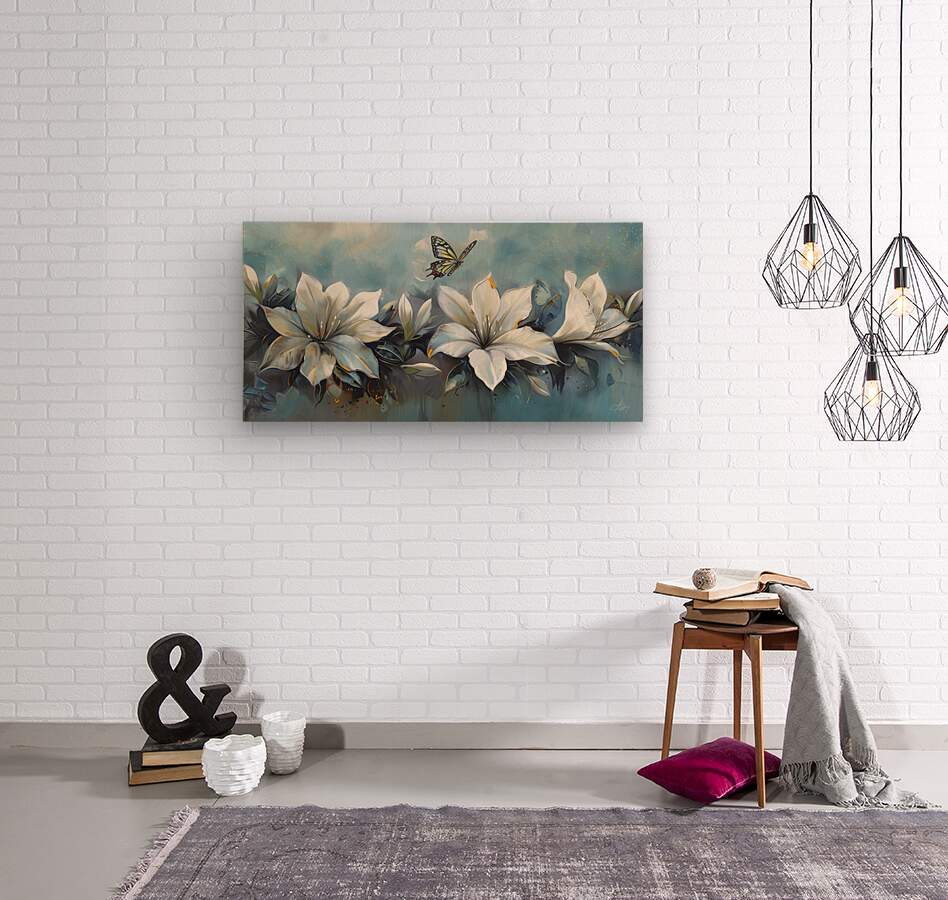 WHITE FLOWERS BUTTERFLY  Wood print