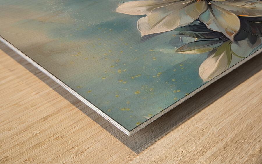 WHITE FLOWERS BUTTERFLY Wood print