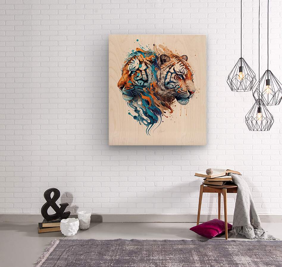 tigers in colors  Wood print