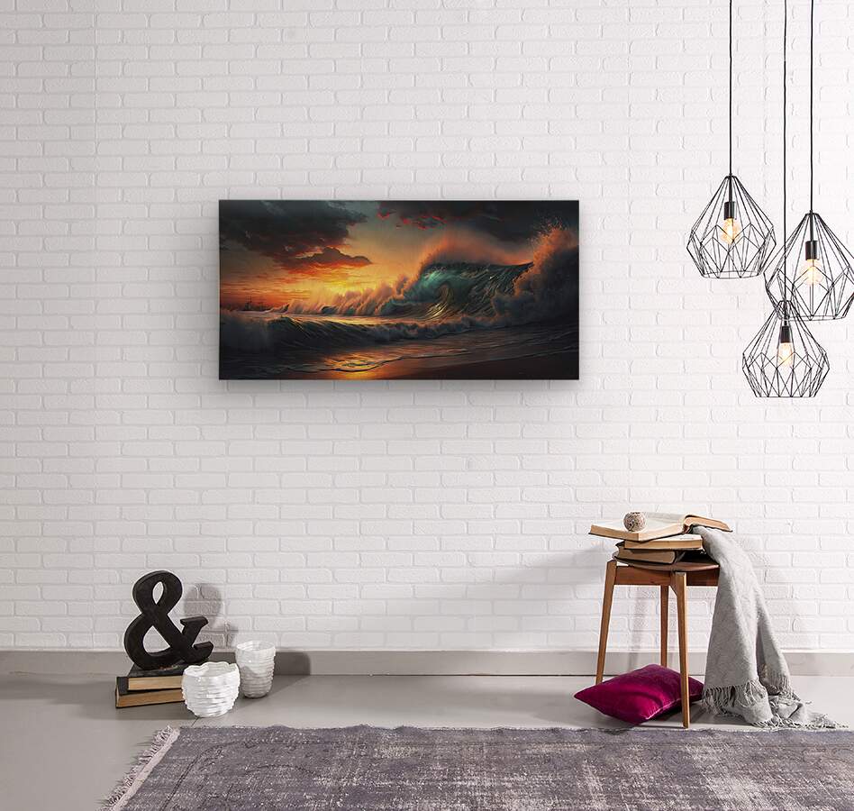 aggressive transparent waves Wood print