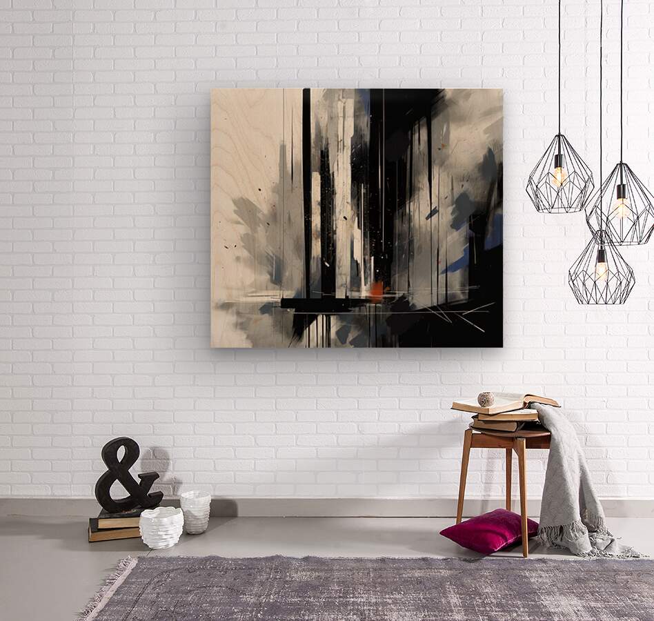 abstract black and white Wood print
