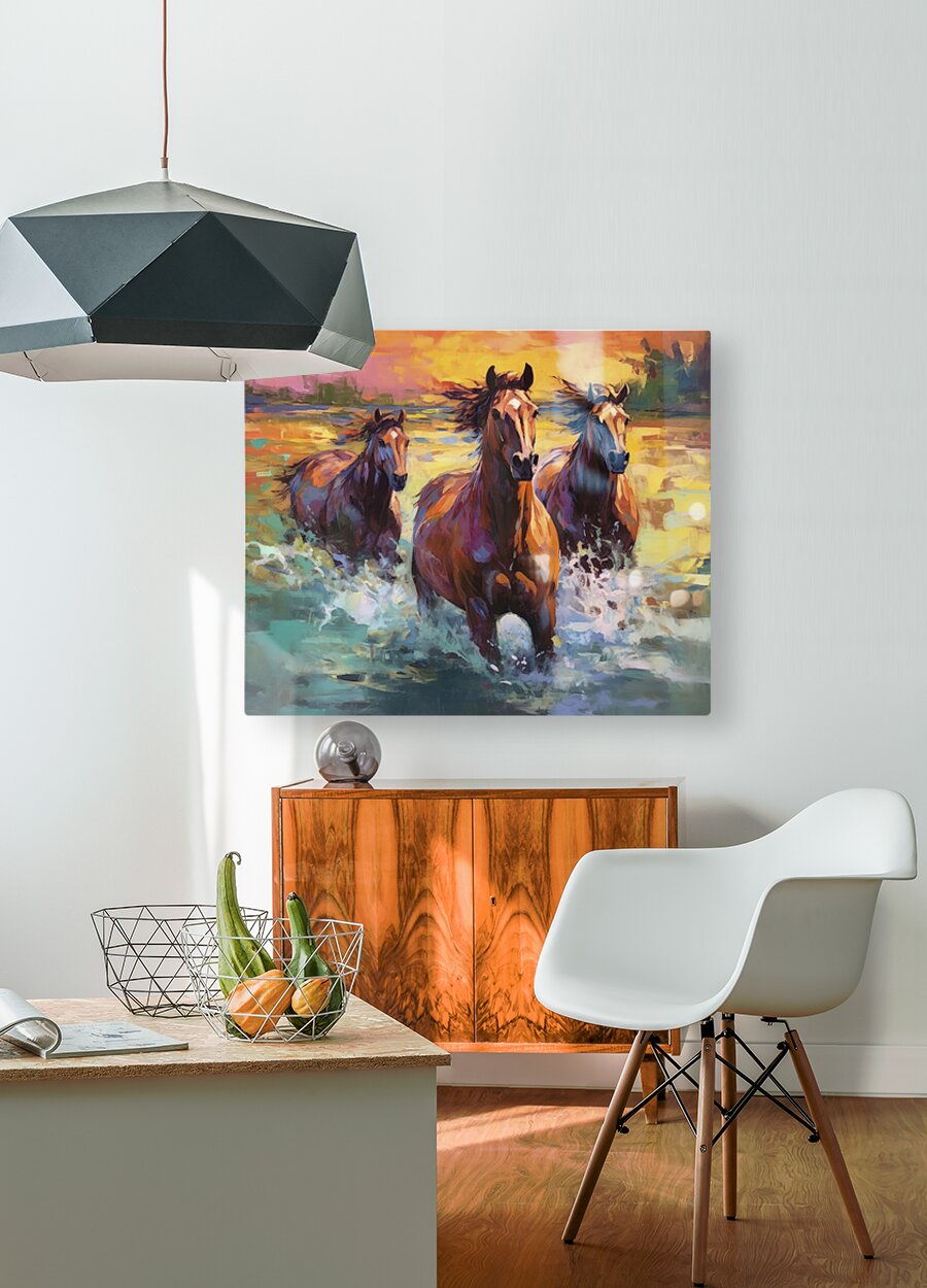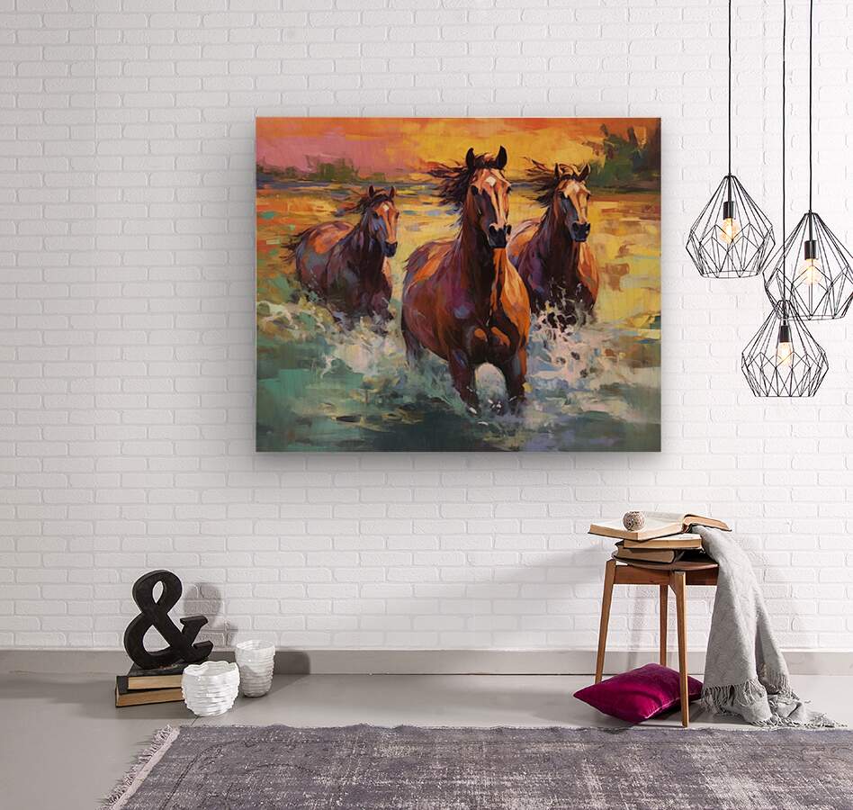running horses  Wood print