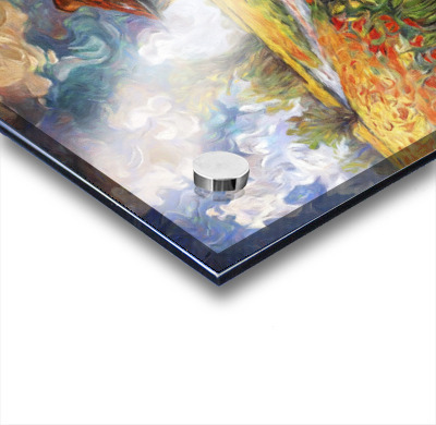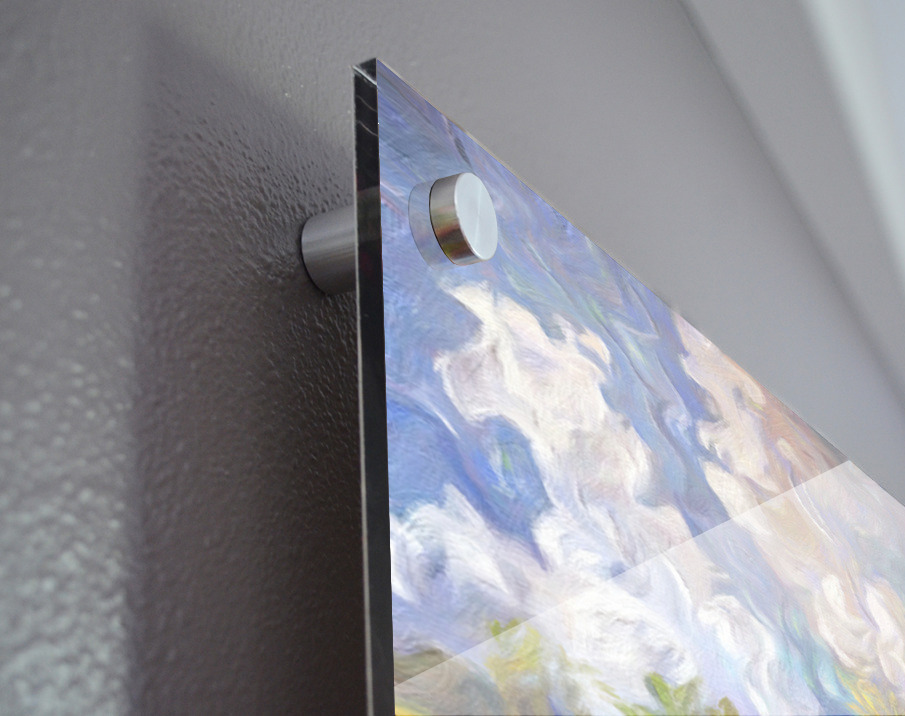 Impression sur acrylique avec entretoises ( cylindres métalliques )