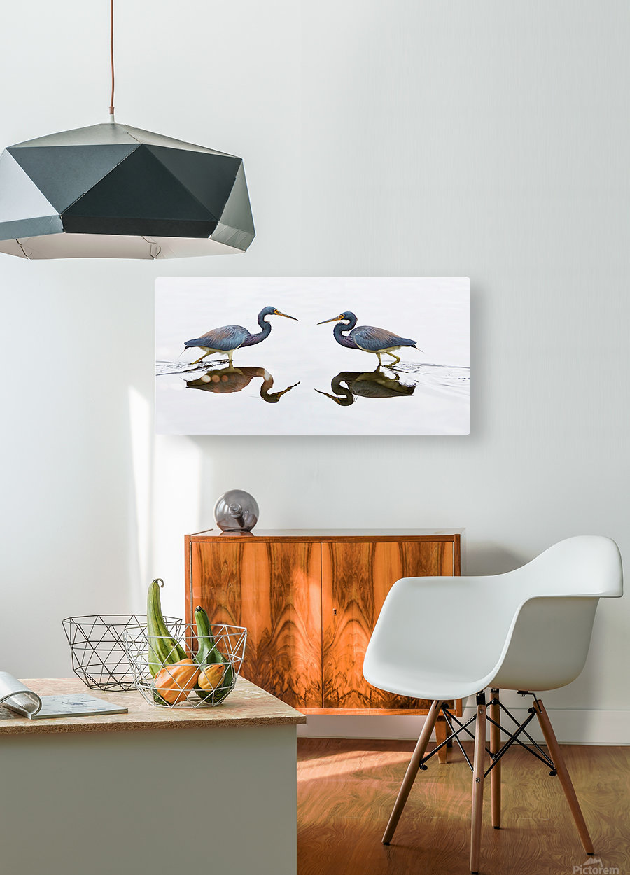 Impression métal blanc avec cadre flottant à l’arrière