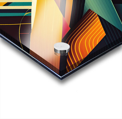 Impression sur acrylique avec entretoises ( cylindres métalliques )