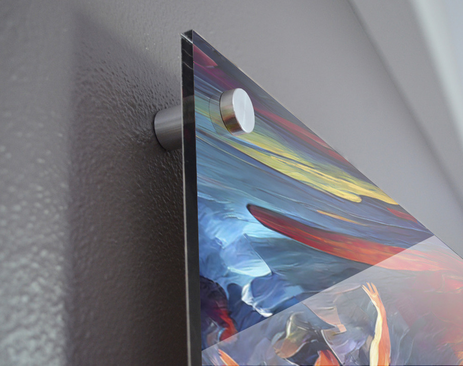Impression sur acrylique avec entretoises ( cylindres métalliques )