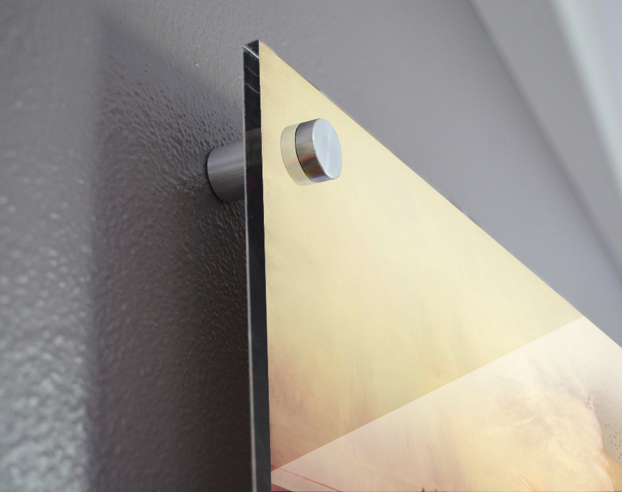 Impression sur acrylique avec entretoises ( cylindres métalliques )