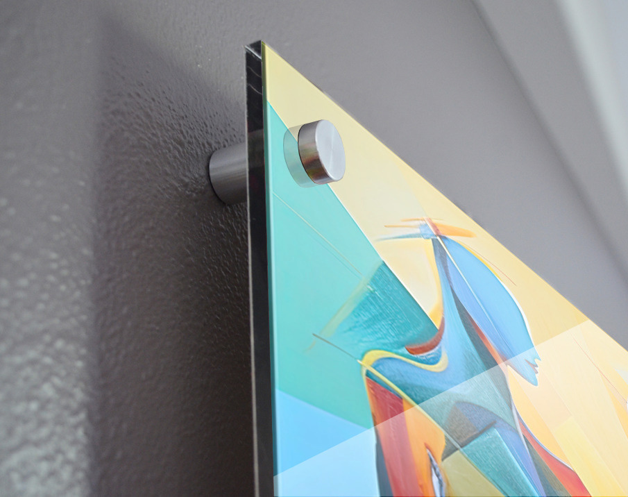 Impression sur acrylique avec entretoises ( cylindres métalliques )